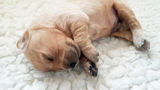 Auch für die Welpen ist der Geburtsvorgang anstrengend. Sie schlafen sehr viel und trinken bei Mama, wann immer es geht.